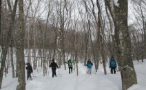 21日は宮城県からの母娘さんを含め5名の女子と鞍掛山へ。 ただの山登りではなく、バックカントリースノーシュー。 第一展望所までは軽アイゼンで登山道を辿り、そこでスノーシューに履き替え 沢出合に下らず、沢の右岸沿いの森を歩いて山…