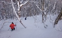 13日は朝9時30分、松川温泉松川荘からスノーシューでスタート。 深雪とブナの森を歩いて、湯ノ森を目指しました。 小雪混じりの風が吹き、遠望は一瞬しか望めませんでしたが 深い雪と白い森を自由に歩き、太陽の出たわずかな時間にコー…