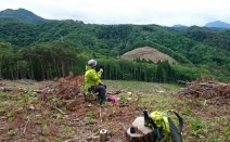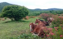 5日は札幌の中学3年生6人と安比高原の森。 午前9時から午後3時まで藪こぎ、沢歩き、木登り、木登り、木登り。 中のまきばには、5頭の寒立馬が放牧されています 木登り 木登り