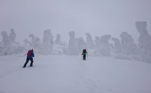 22日は秋田県の森吉山へスノーシューハイク。 この日、森吉山は風もなく比較的暖かでした。 山頂を目指すのではなく、目的は樹氷を見ることと森吉山遠望。 Compassの他にゴンドラ駅に登山届を出し、樹氷観賞コースを出て石森ピーク…