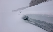 3月4日の岩洞湖は吹雪。 でもワカサギ釣りのテントはたくさん。 3月に入っても岩洞湖はしっかり凍っています。 でも水位ならぬ、氷位は下がりつつあるようです。 岸辺の氷は氷の膨張の圧力で割れているところが多くなりま…