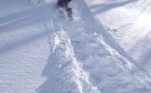 12日は東京から3名、盛岡から3名のリピーターさんと その友だちは友だちグループ6名で七滝へ 七滝登山口からすぐ森の中を自由に歩き 焼切沢を眼下に見ながら目指しました。 時折焼切沢のほとりへスノースライダー。 森…