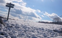11月に入り寒波到来で山はいきなり積雪。 標高1060mの七時雨山も思いのほか積っていました。 と言うことで、2日は今シーズン初の雪歩き。 Aさんも雪の山は全く初めて。 青空、白い雪、展望良し。 下山では牛の出迎…