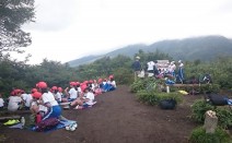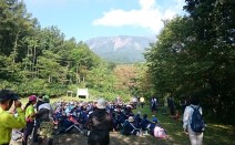 8月31日は、花巻の小学5年生63名と鞍掛山へ。 山頂でお昼ごはん あっ、牛! 相ノ沢牧野には牛さんがいっぱいです。