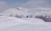 12日は岩手秋田県境の標高900mの仙岩峠へ。 他の登山者は峠の南にある貝吹岳を目指していましたが、私たちは峠が目的地。 この日はデッカイ秋田駒はもちろん、岩手山も早池峰山も姫神山も志和三山も盛岡の街も見えました。 峠に雪ベン…