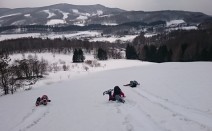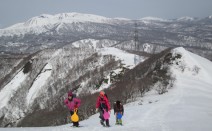 3/22は、前日貝吹岳に登った愉快な3人組に盛岡の女子が3名加わり区界高原兜明神岳へ。 大雪原にスノーダイブ! 森の中にコースを作ってスノースライド 盛岡女子の3重連! 山頂部岩場で早池峰山を背に 見晴らし台付近から兜明神を背…