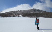 2/28は岩手山中腹の焼走り熔岩流第二噴出口へ。 天気晴れ。ほぼ無風。他に登山者なし。南部富士東斜面を貸切です! 岩手山を目指して大雪原をハイクアップ 約3時間で熔岩流第二噴出口 あの大雪原へ 南部富士を背にダウンヒル 岩手山…