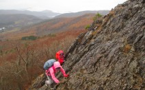 兜明神岳と岩神山は盛岡の郊外からもよく見えるお隣さん同士の山。 岩神山の山頂は簡単に登れますが、兜明神岳の山頂には登れない人もいます。 兜明神岳山頂部は突然そこだけ鋭く切り立った尖峰。しかも蛇紋岩。 高さはわずかですが垂直の岩…
