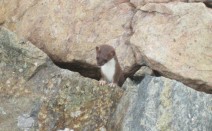 小田越コース2合目手前でオコジョがお出迎えです。 ハヤチネウスユキソウやナンブトウウチソウは静かに終りを告げ 今はナンブトラノオ、タカネナデシコ、サマニヨモギ、イブキジャコウソウ、チシマフウロが咲き誇っています。 そして、東北…