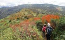 たおやかな 山なみ続く裏岩手 霧晴れ錦の景色広がる 24日は裏岩手連峰北部縦走。 朝の霧が次第に晴れてお昼前には青空が見え、展望が広がりました。 裏岩手連峰の北部は静かな展望ルートです。 畚岳登山口~畚岳~諸桧岳…
