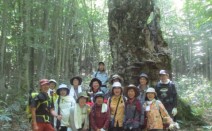 盛岡市 西部公民館主催 自然環境講座でブナ林 27日は50代から80代の昔少年少女たちと安比高原ブナの二次林を探検散策 散策路や散策路を外れて森を歩き巨木を見上げ、沢を渉り、プチヤブ漕ぎし 森の働きやそこに暮らす動物の営み…