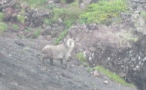 山頂の 岩壁の下のカモシカくん キミもコマクサ見に来たのかな? 7月3日はコマクサを求めて馬返しから焼走りへ岩手山を縦走。 山頂南斜面の崖の下をカモシカくんが悠々と歩いていました。 焼走りのコマクサは、数、株の大…