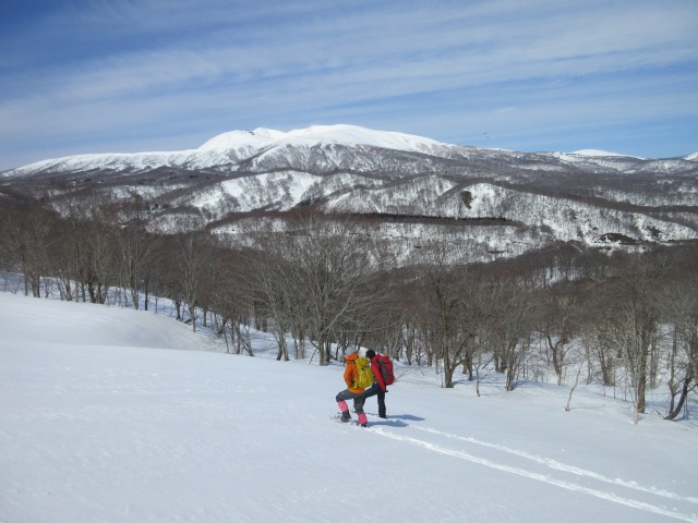 790mピークへの雪原を行く 奥は秋田駒ヶ岳